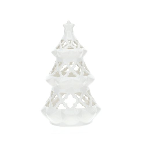 Albero in porcellana portatealight 23cm di Hervit Creation, un portacandela tealight natalizio a forma di albero di natale realizzato in pregiata porcellana bianca lucida e traforata di altezza 23cm. Posiziona questo portacandele su un tavolo da salotto o in un centrotavola natalizio durante un pranzo o una cena per donare un dettaglio in più all’atmosfera natalizia. Insieme al portacandela a forma di albero di natale è compresa la scatola regalo marchiata Hervit.