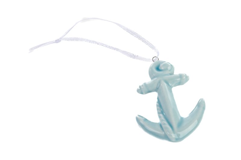 Appendino ancora in porcellana blu, un’ancora in porcellana da appendere di Le Stelle per bomboniere o segnaposti a tema mare.