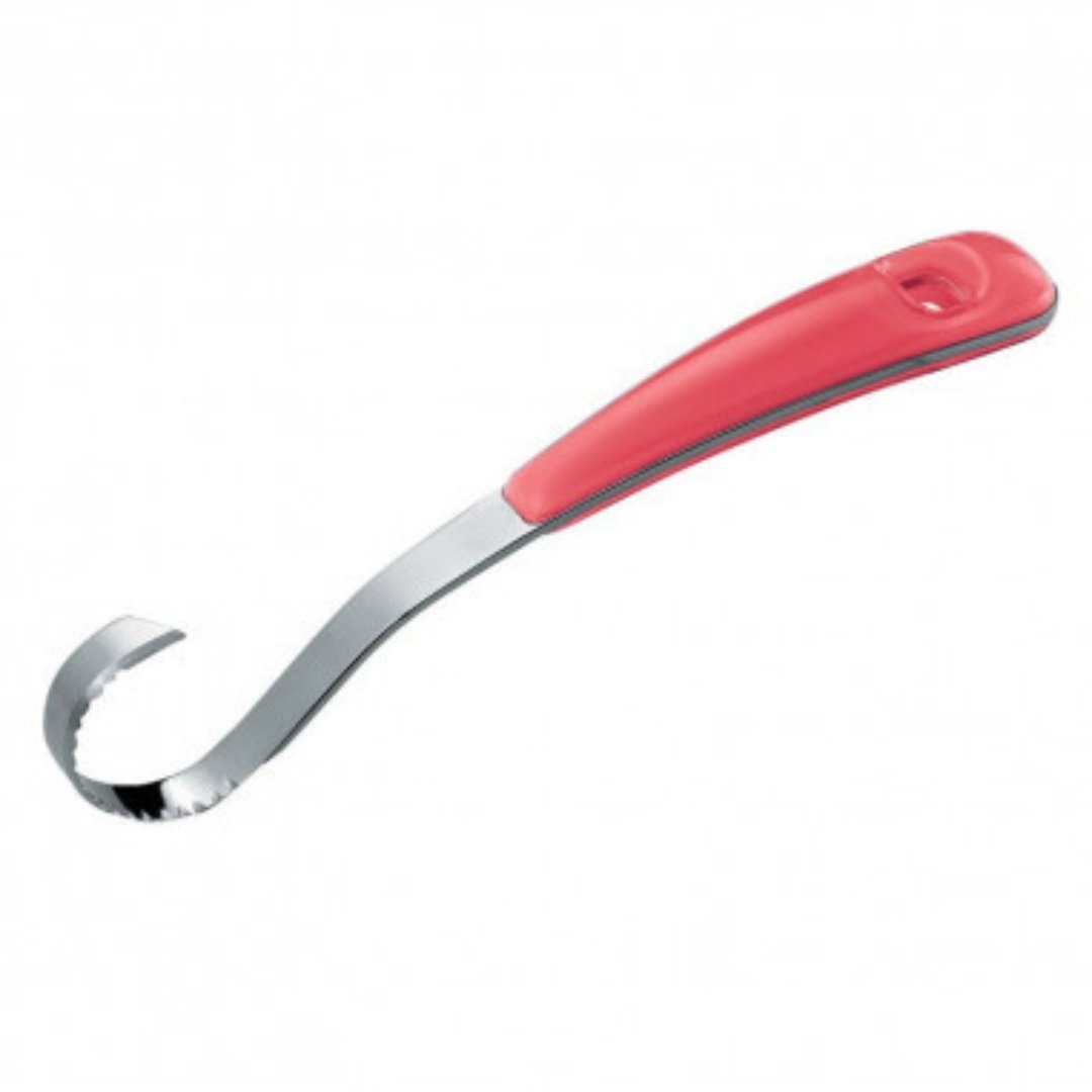 Arricciaburro Latina rosso trasparente di Guzzini, un arricciaburro in acciaio inox 18/10 con manico in acrilico.