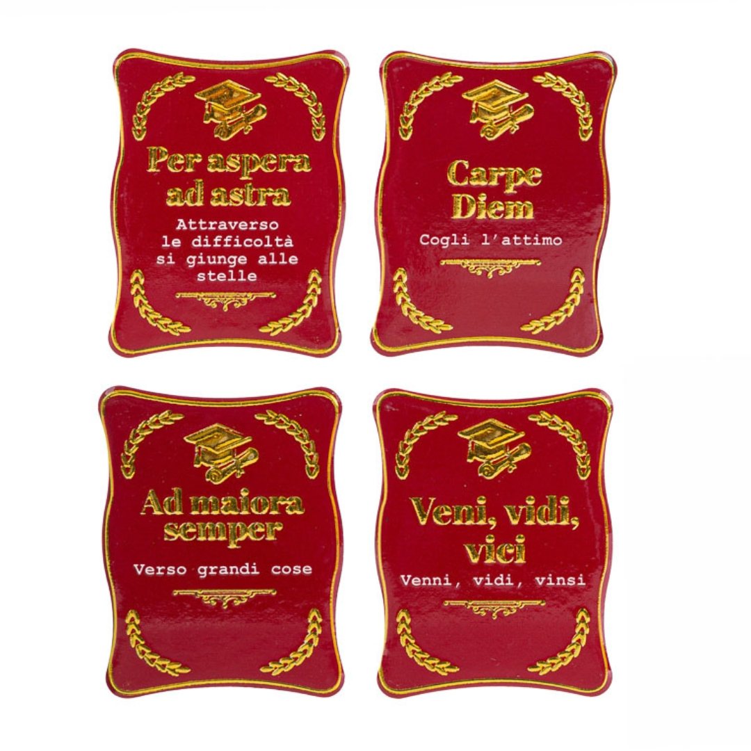 Calamita laurea in ceramica in quattro modelli assortiti come bomboniere di Laurea.