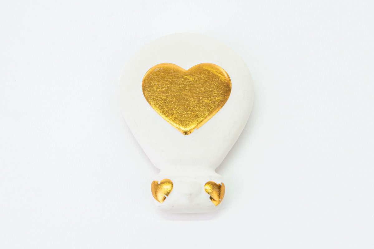 La calamita mongolfiera in porcellana oro è la bomboniera perfetta per battesimo, matrimonio, cresima, comunione e compleanni.