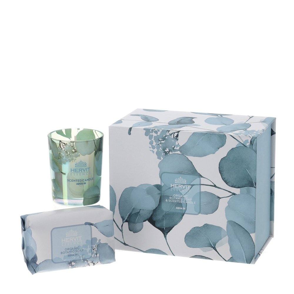 Set Candela e Sapone Botanic Blu – Fragranza Aqua Di: Un’Esclusiva Idea Regalo di Hervit Creation