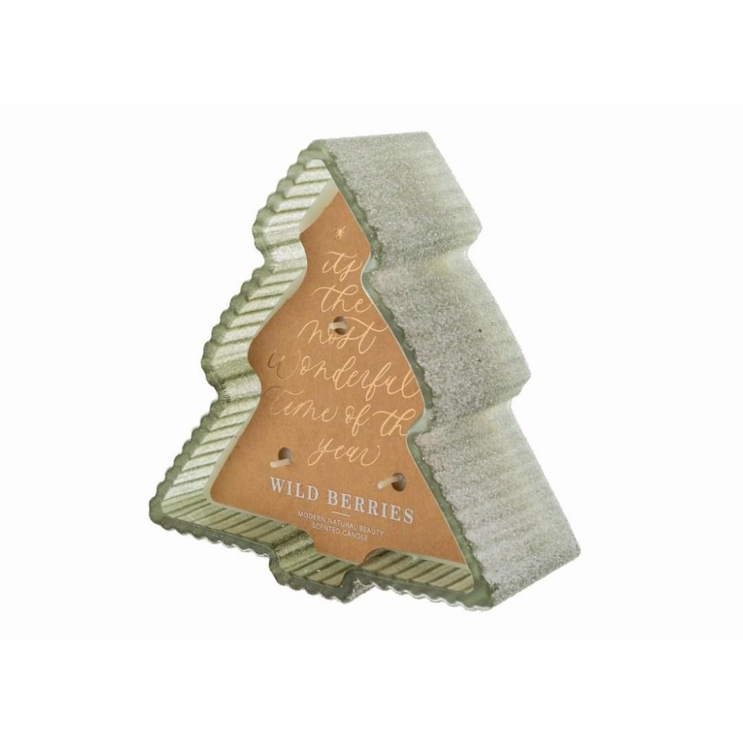 Il contenitore in vetro a forma di albero dona un tocco moderno e sofisticato alla classica candela natalizia, rendendola un complemento decorativo versatile e di grande impatto visivo.