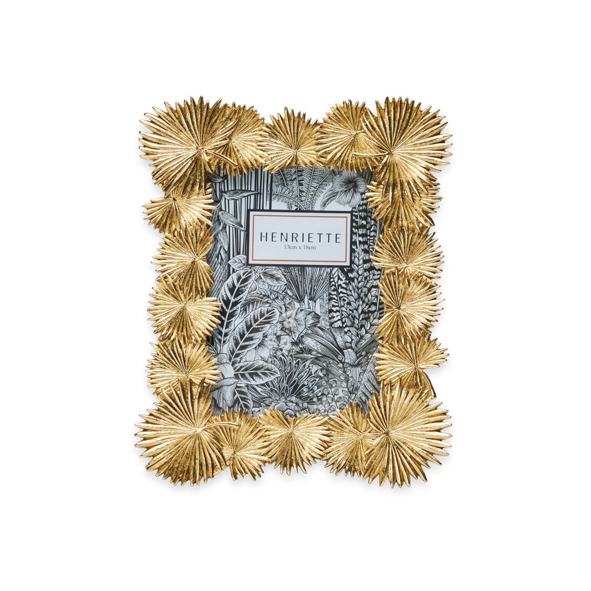 Il portafoto palme oro 13x18cm è una cornice firmata Henriette caratterizzata da foglie di palma color oro. Questo portafoto moderno è ideale come cornice per ambienti moderni.