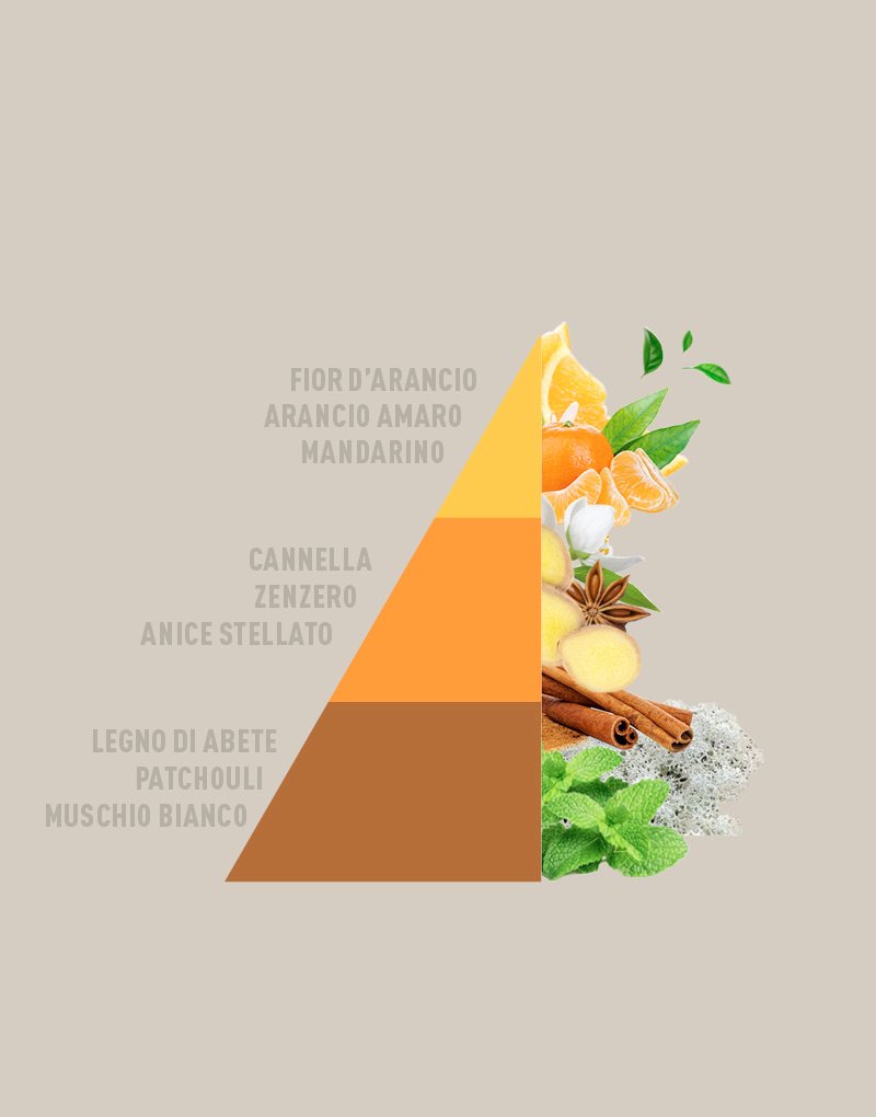 Note di Testa: Fior d’Arancio, Arancio Amaro, Mandarino.