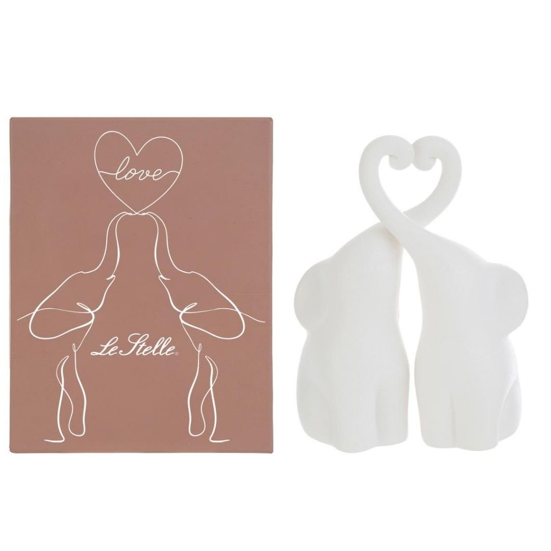 Gli Elefantini Proboscide Intrecciata 35cm di Le Stelle Bomboniere rappresentano una decorazione ricca di significato, ideale per chi desidera un oggetto simbolico ed elegante. Realizzati in ceramica bianca, questi elefantini raffigurano una coppia lui e lei con le proboscidi intrecciate a formare un cuore, simbolo universale di amore, unione e protezione. Secondo la tradizione, gli elefanti sono considerati portafortuna, portatori di energia positiva, stabilità e prosperità, rendendo questo set perfetto come idea regalo per momenti importanti.