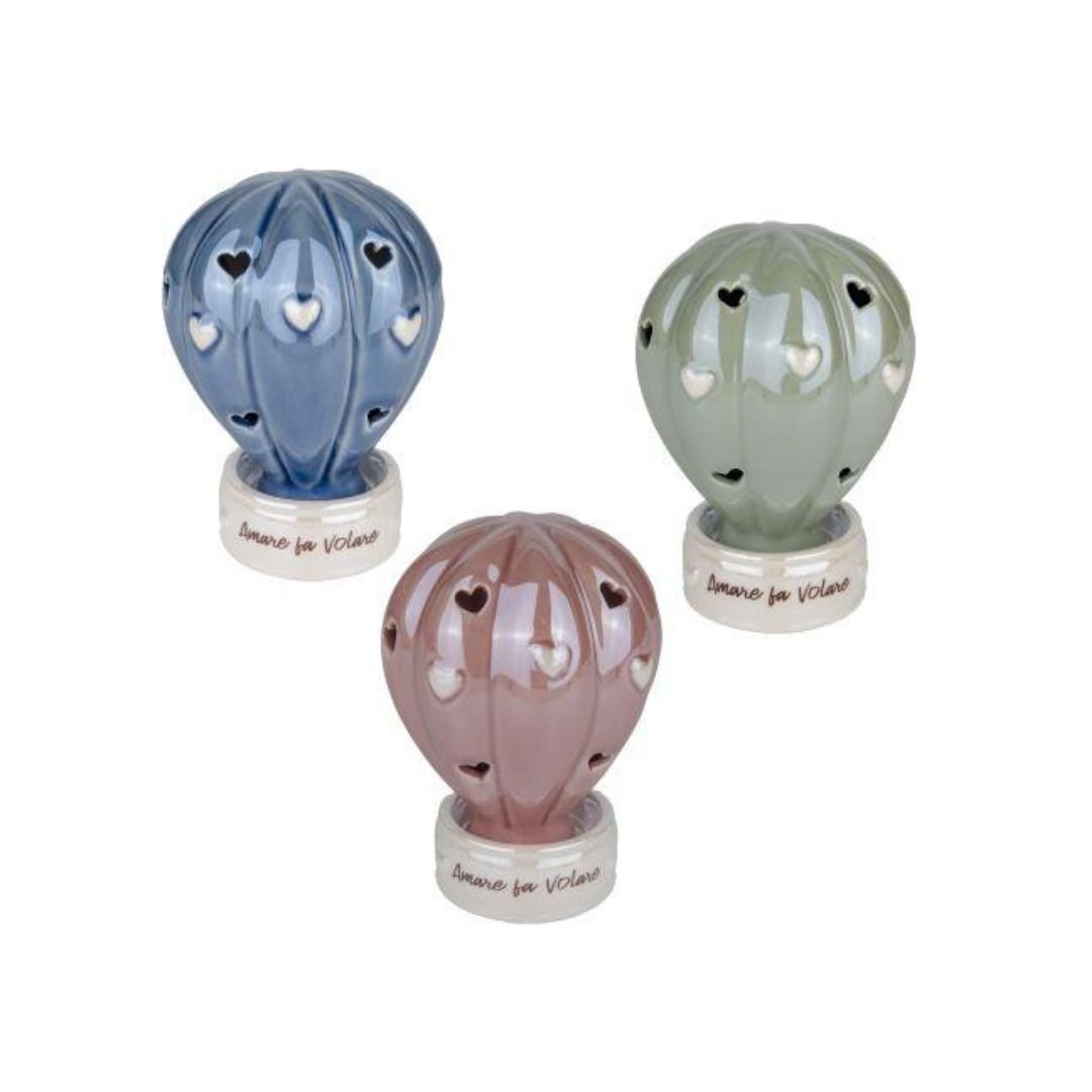 Realizzata in porcellana e rifinita con colori delicati, questa lampada mongolfiera colorata unisce valore decorativo e funzione luminosa, diventando una scelta perfetta per chi cerca bomboniere utili ma anche raffinate.