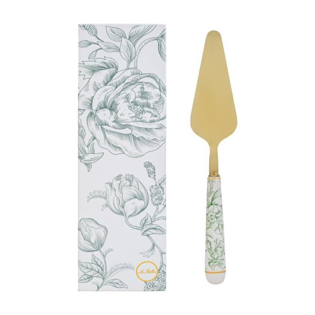 La Paletta Torta Decoro Verde misura 25 cm, una dimensione ideale per un utilizzo comodo e funzionale. È realizzata con manico in ceramica decorata e estremità in metallo, materiali selezionati per garantire resistenza, durata e un aspetto curato nel tempo. Ogni dettaglio è pensato per valorizzare la bomboniera, rendendola non solo bella ma anche affidabile nell’uso quotidiano.