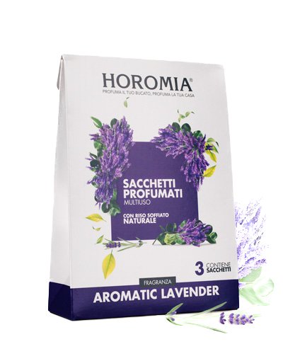 L’unicità e l’intensità delle fragranze Horomia ora in Sacchetti Profumati Multiuso. Creati con riso soffiato naturale non alimentare, i sacchetti profumati Horomia sono formulati per donare ai tuoi capi e alla tua casa il profumo unico e inconfondibile della tua fragranza preferita. Ogni confezione contiene tre sacchetti profumati avvolti in una busta trasparente ad alta protezione, per un profumo intenso e duraturo fino a 12 settimane.