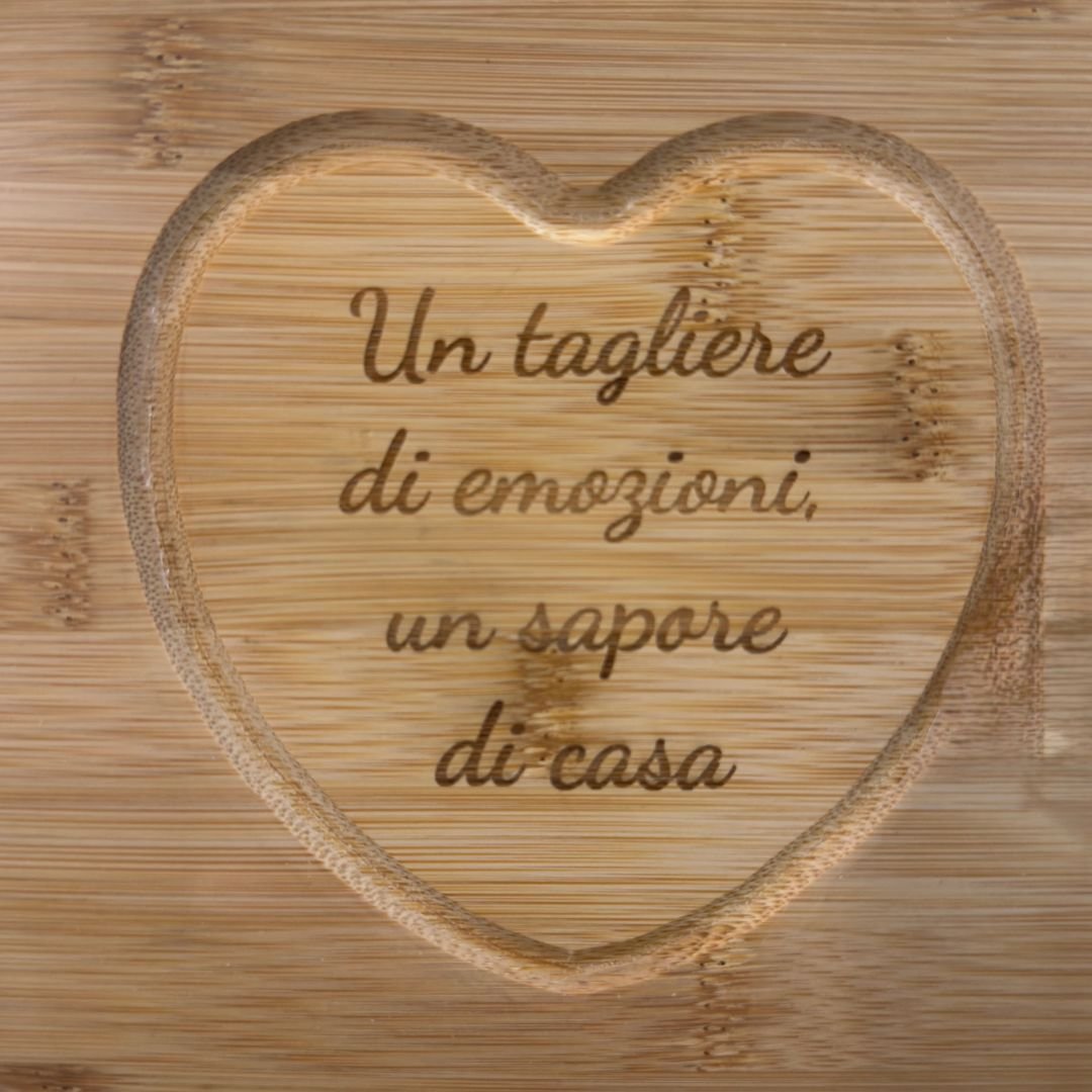 Uno degli aspetti più richiesti è la possibilità di realizzare taglieri personalizzati. Questo modello è un tagliere personalizzabile tramite incisione laser con campo incisione 6×7 cm.