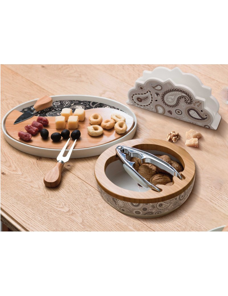 TAGLIERE SHANTI NERO PORC/BAMBOO C/2COLTELLI FORMAGGIO INOX